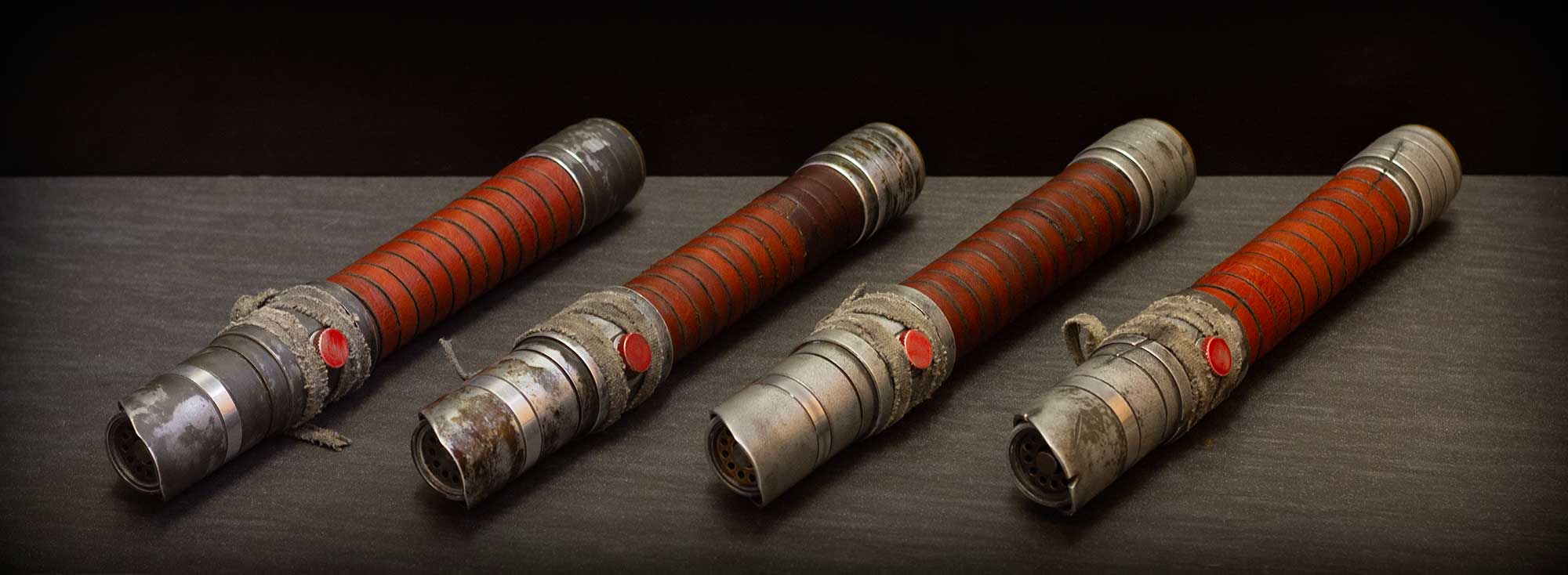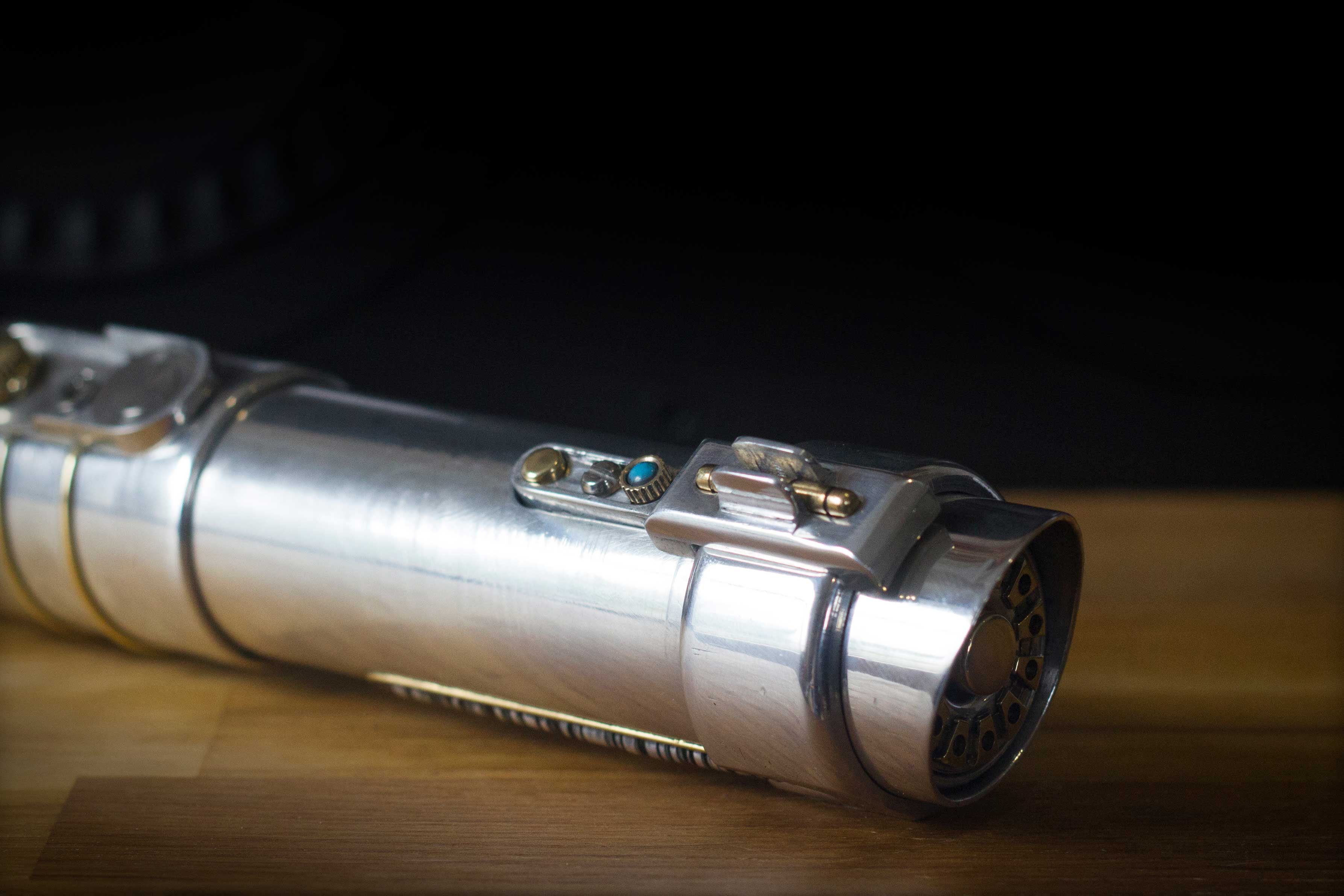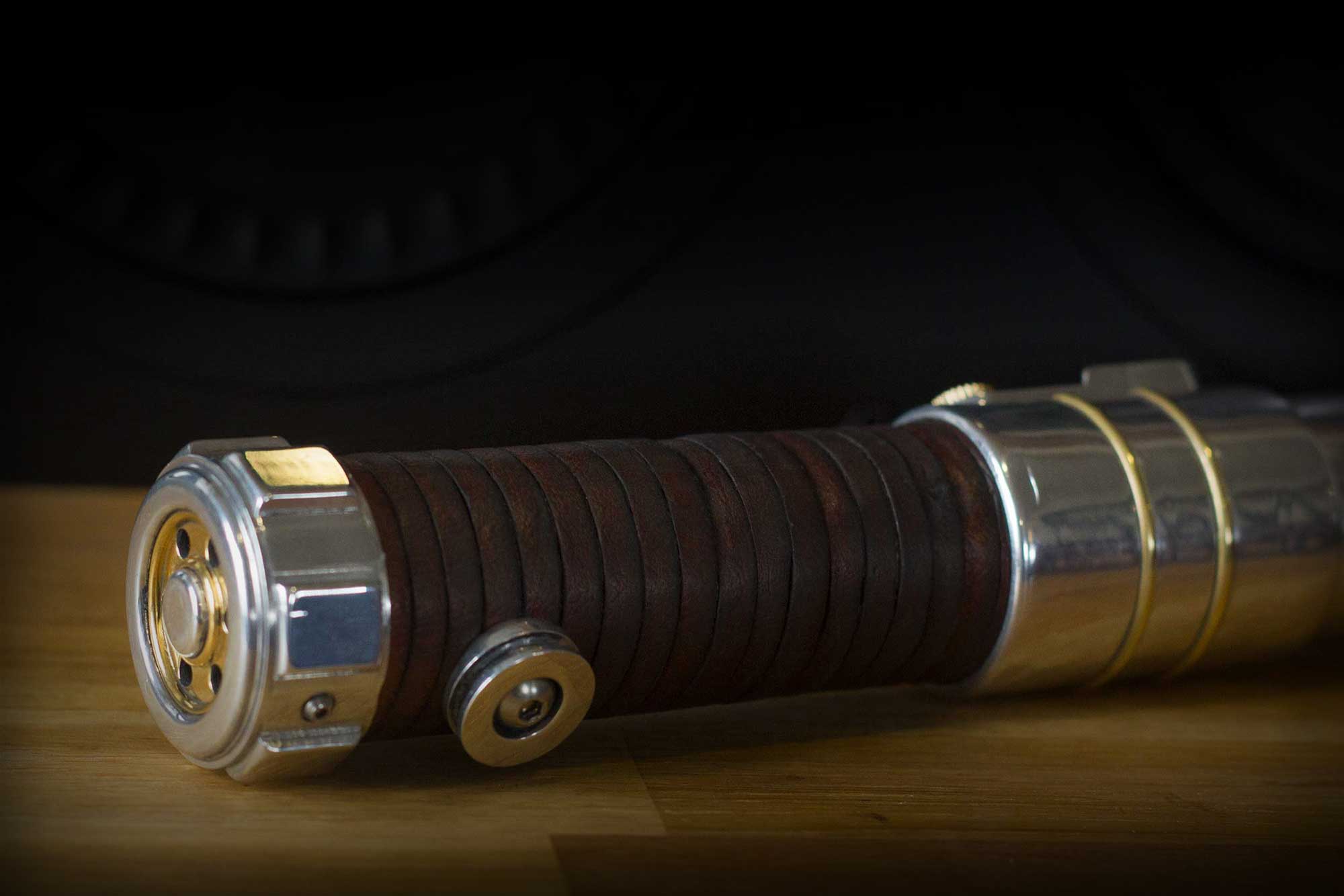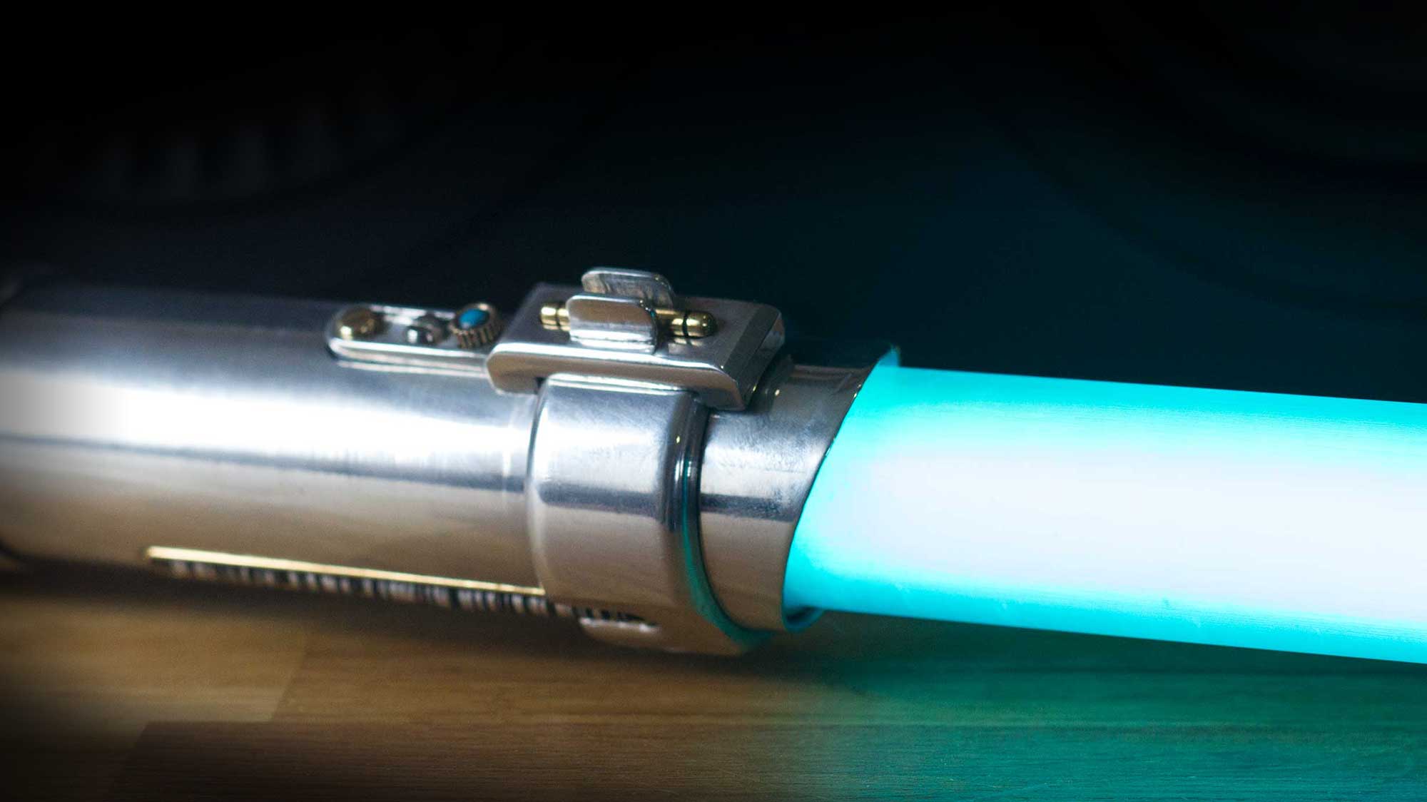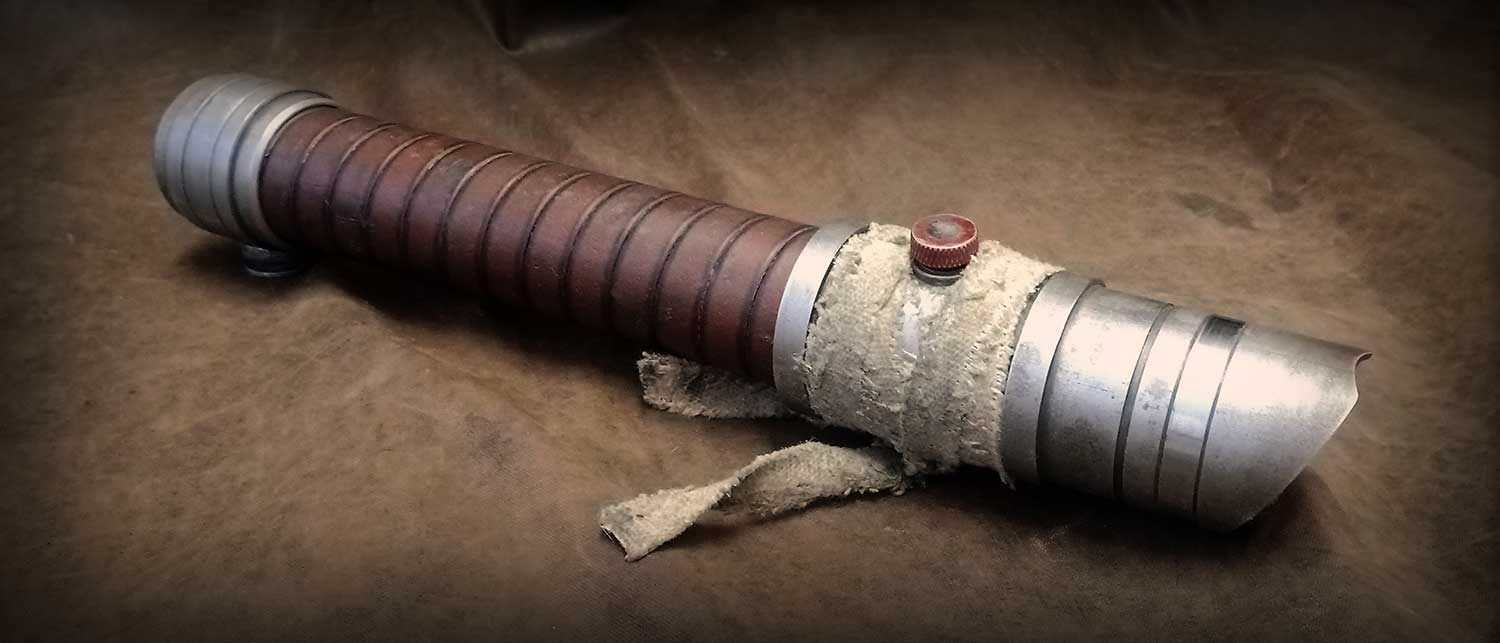 A shiny padawan and weathered master saber pair