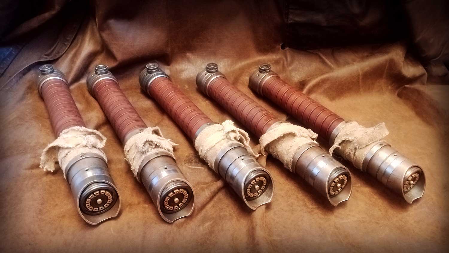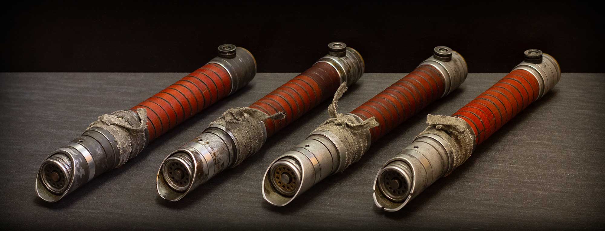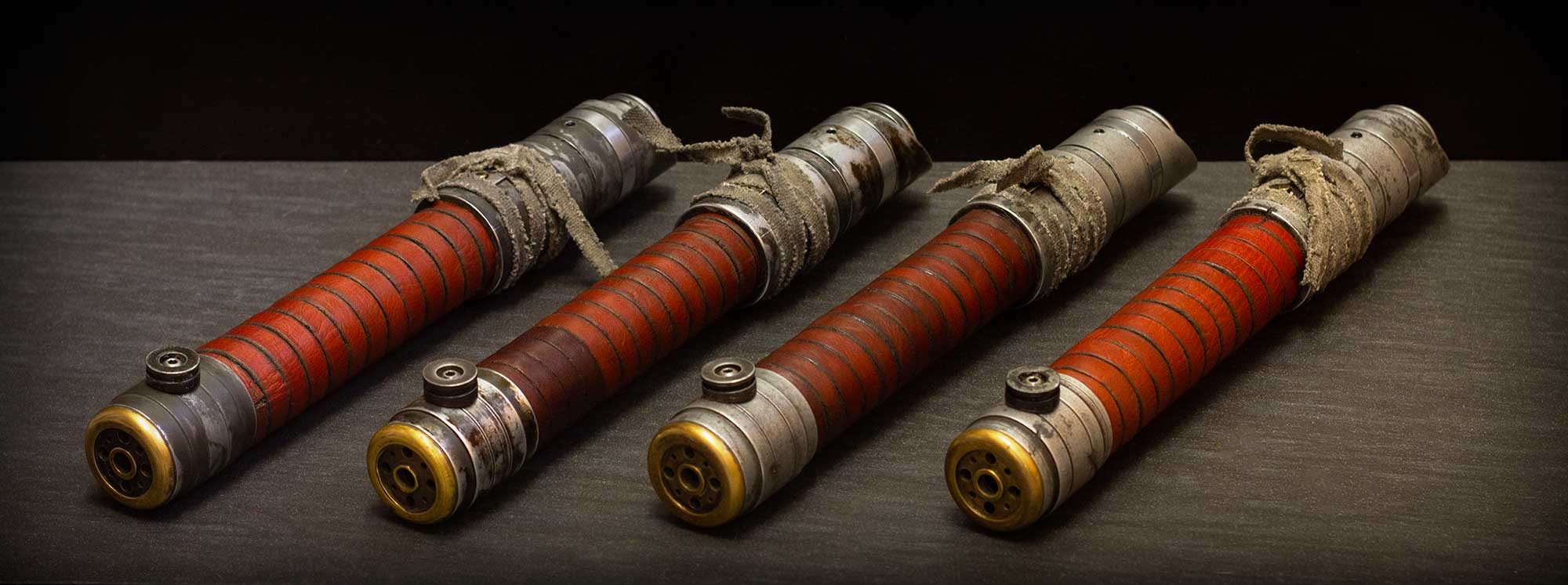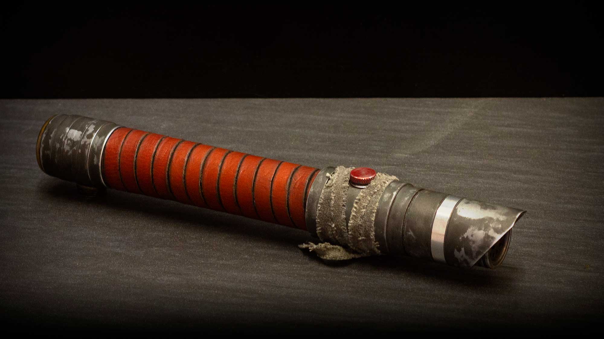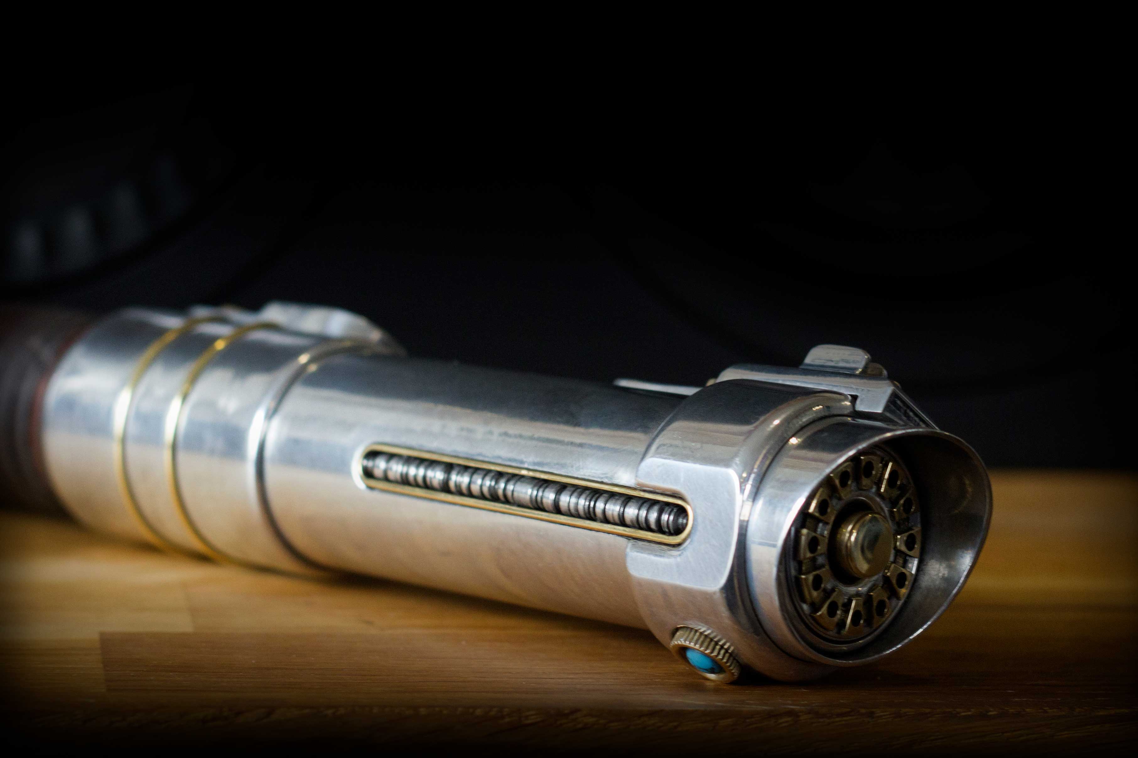 A shiny padawan and weathered master saber pair