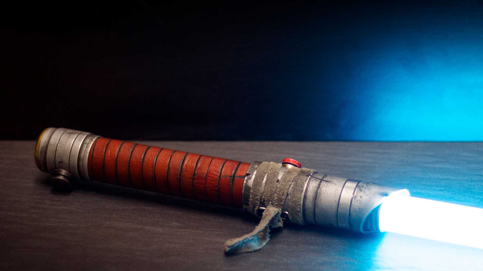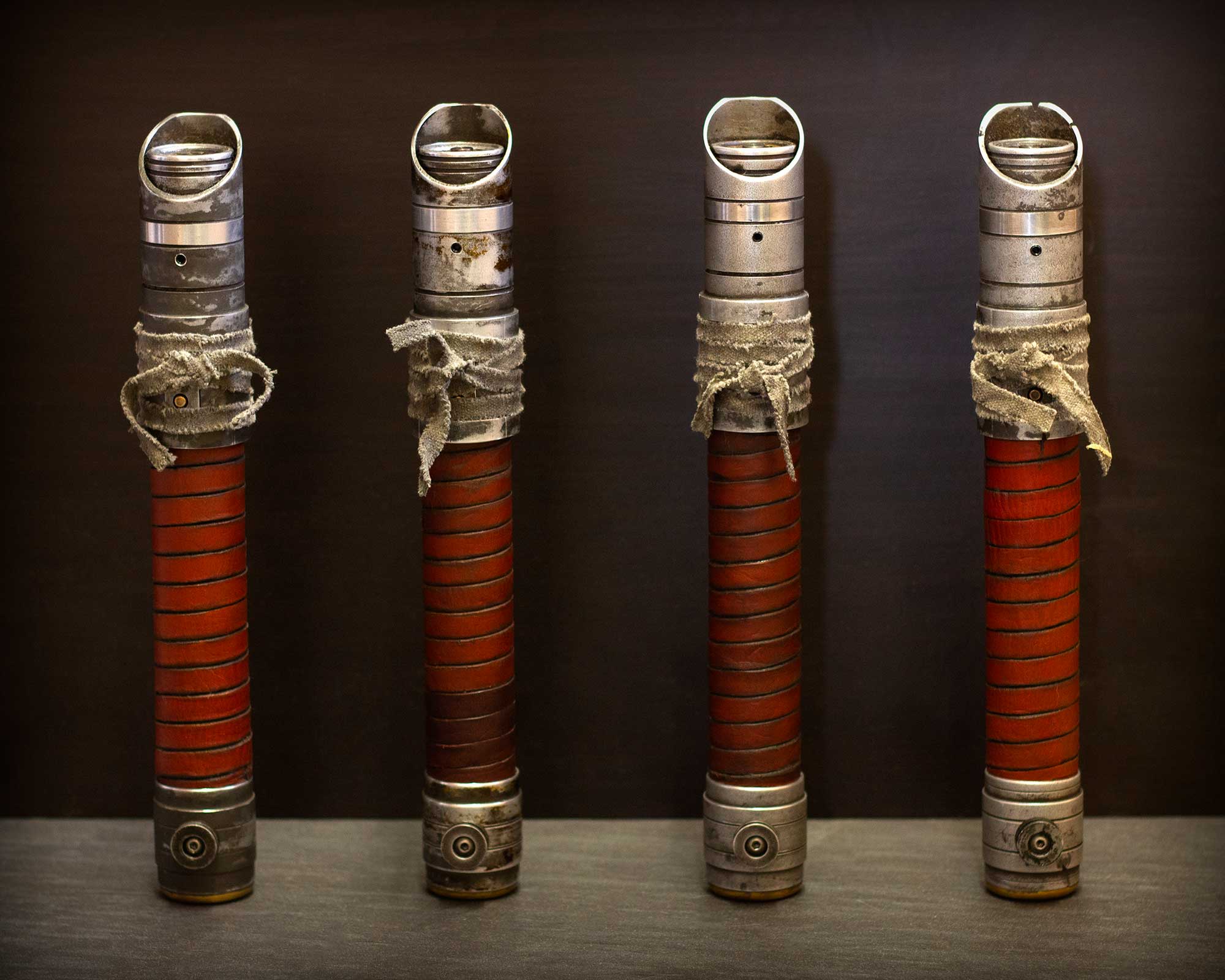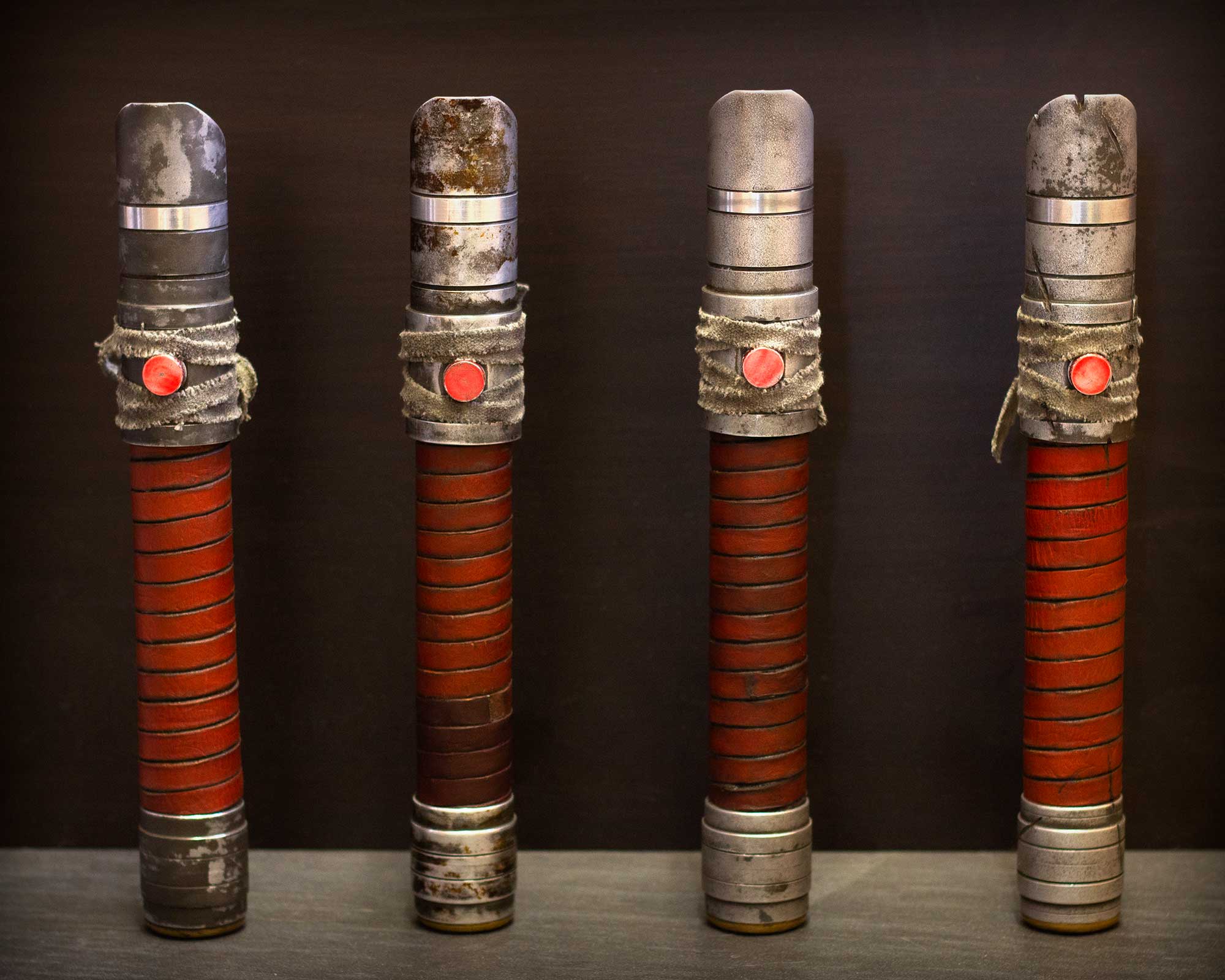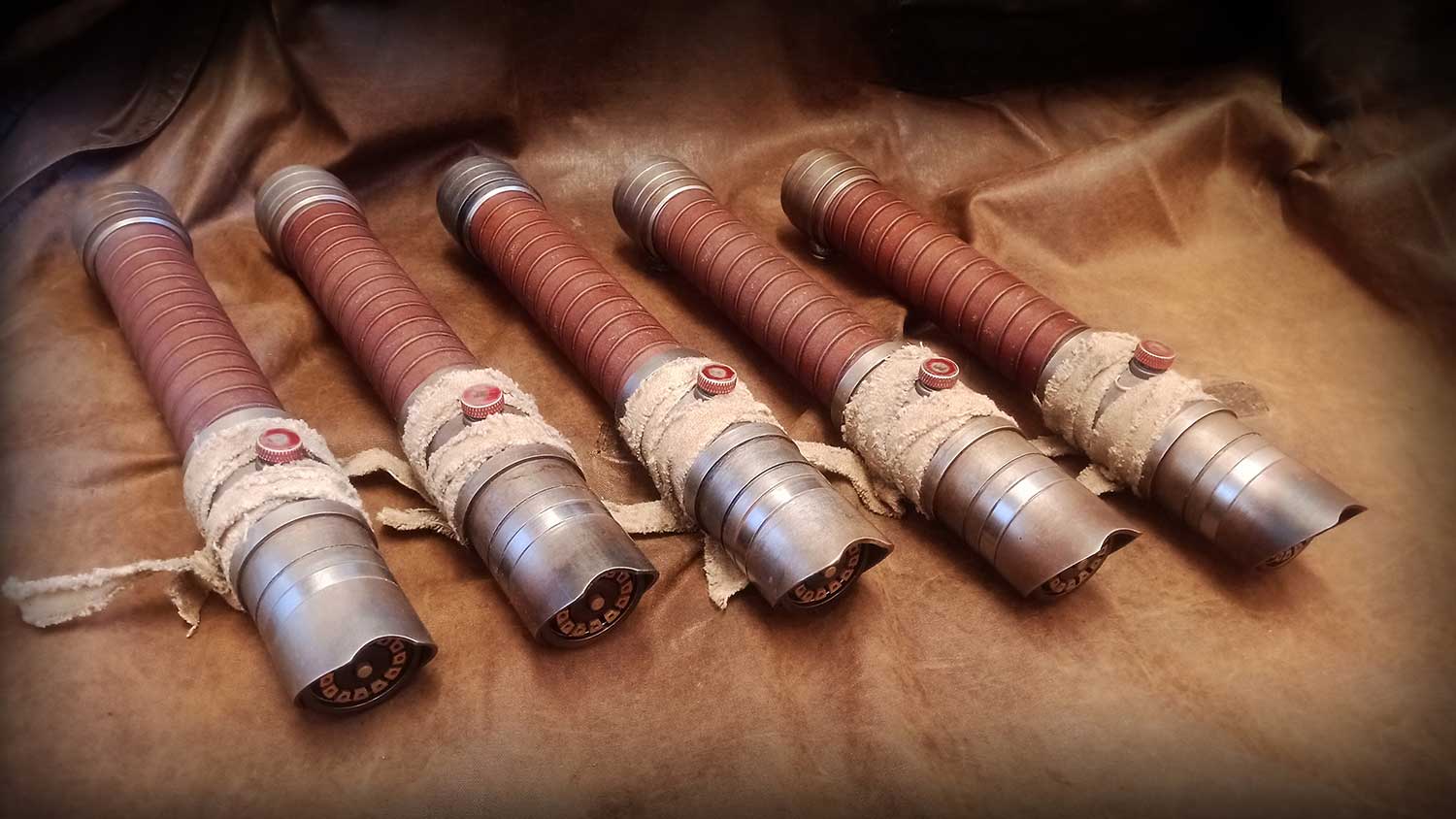 A shiny padawan and weathered master saber pair