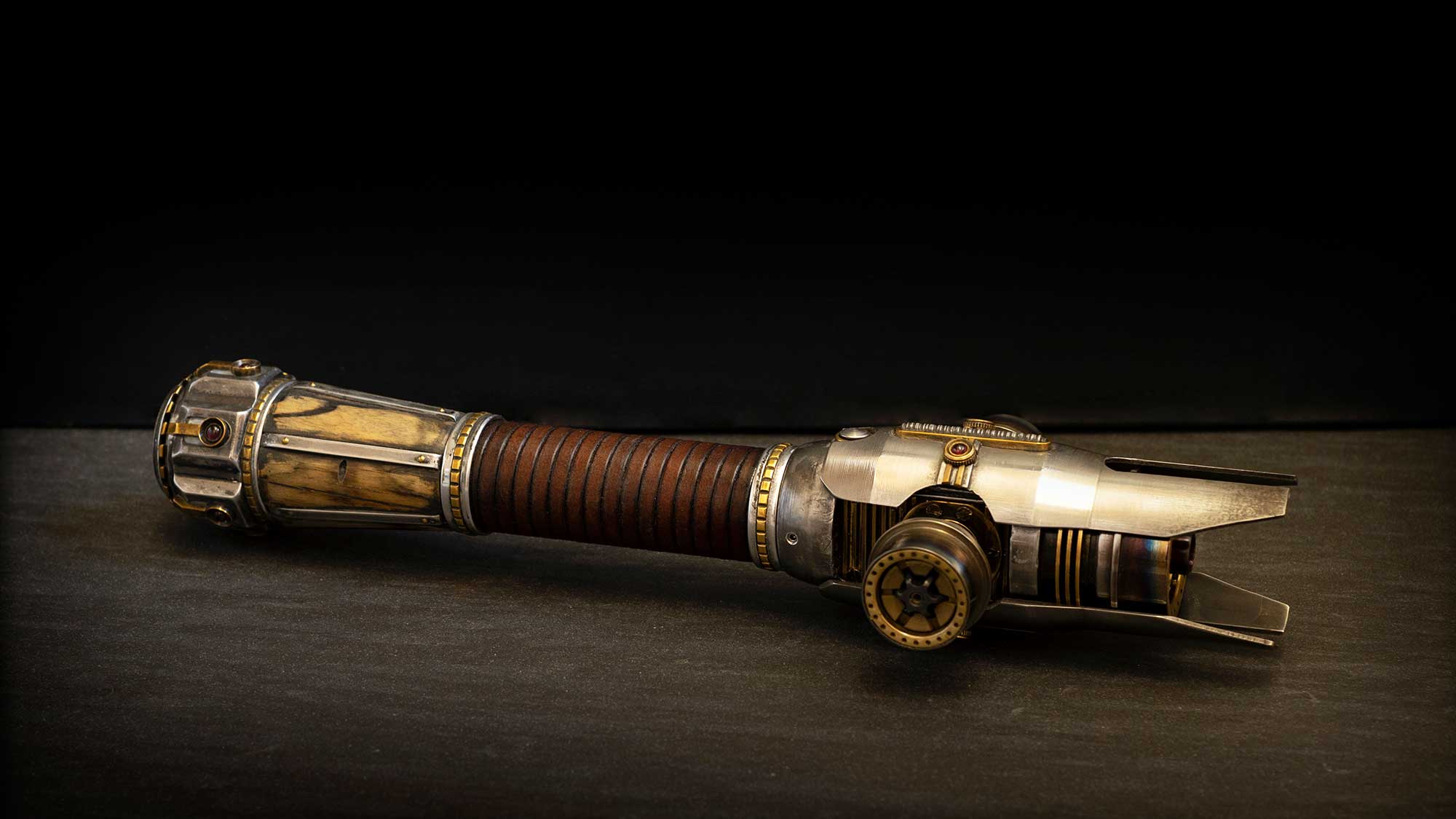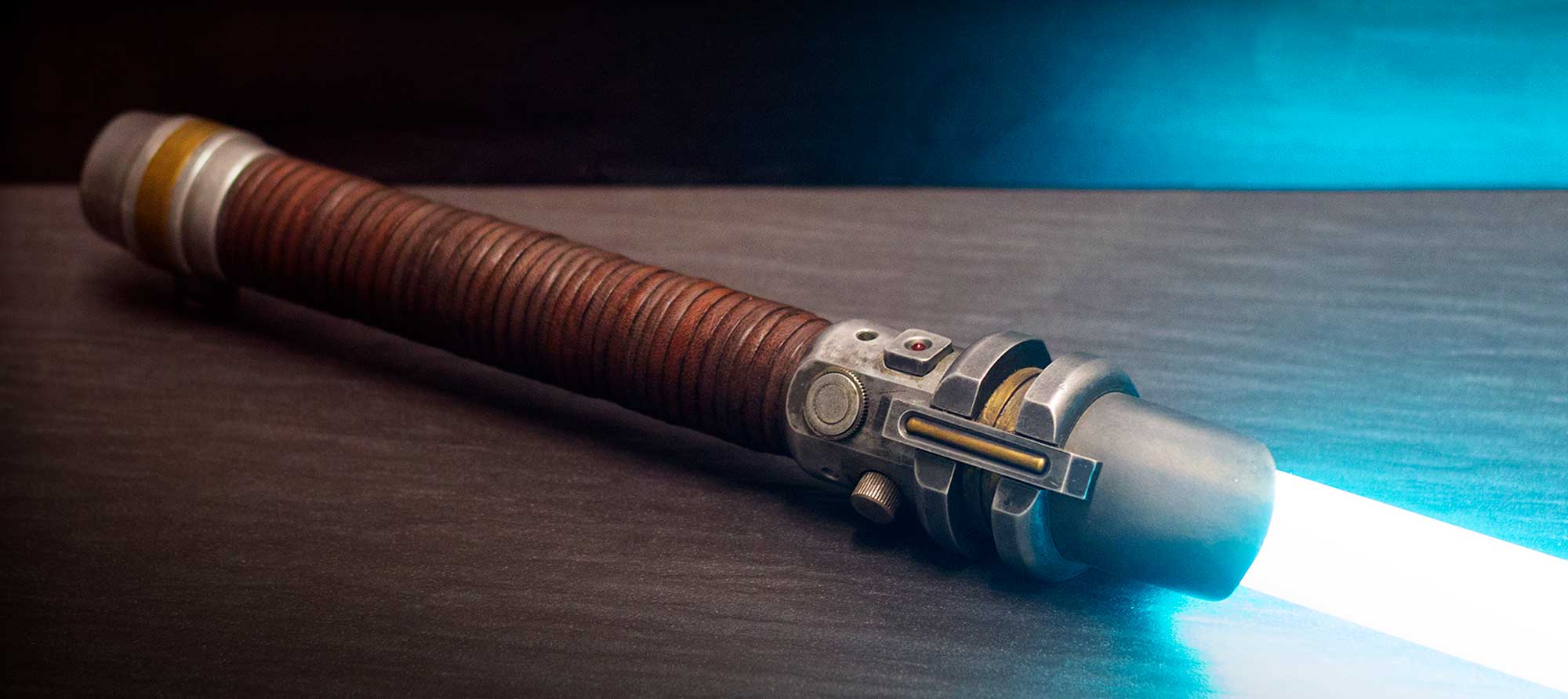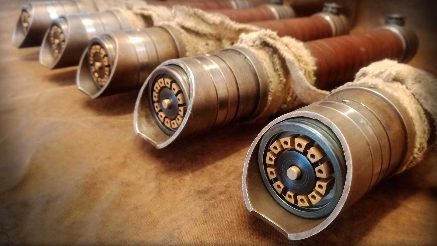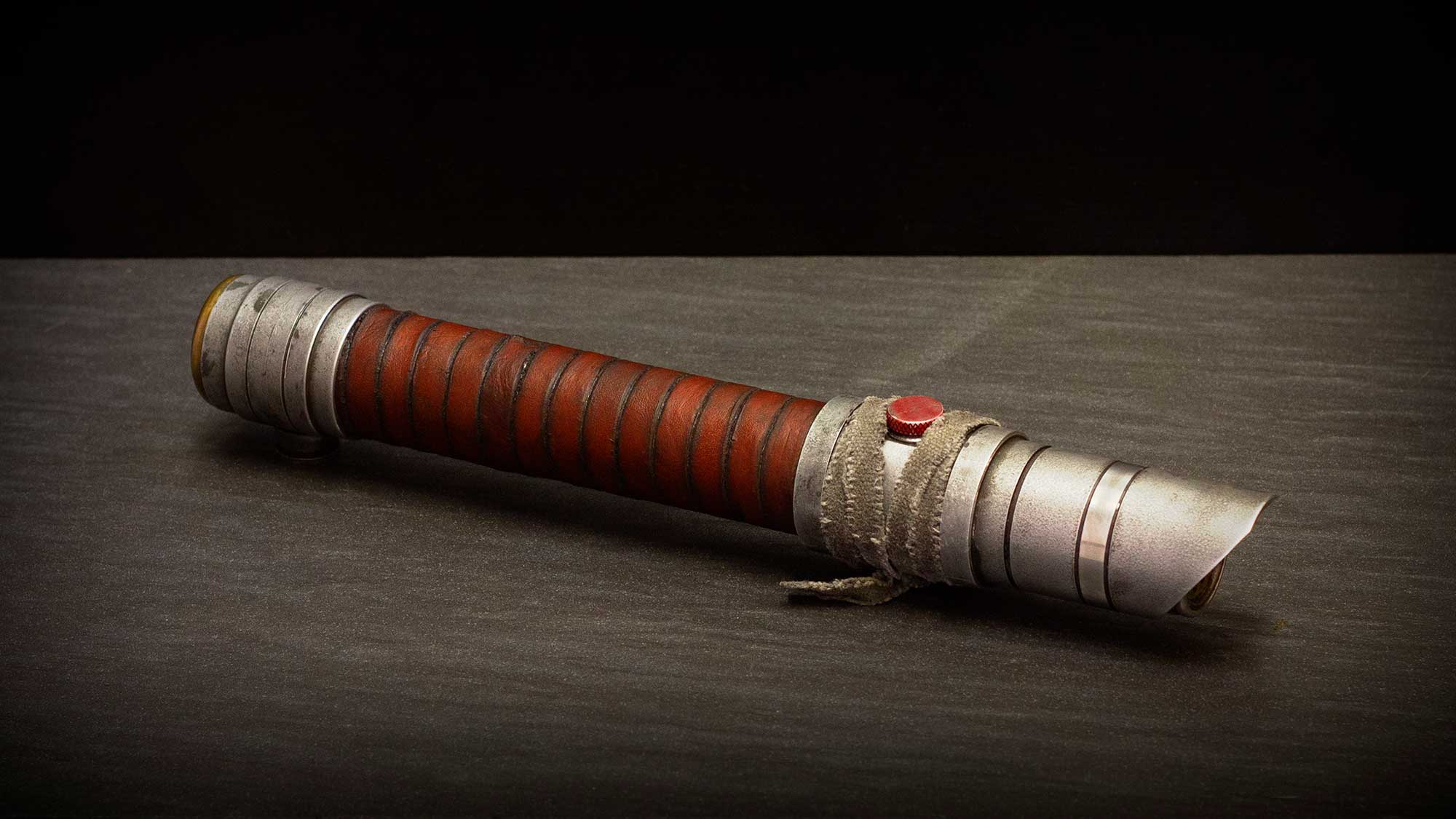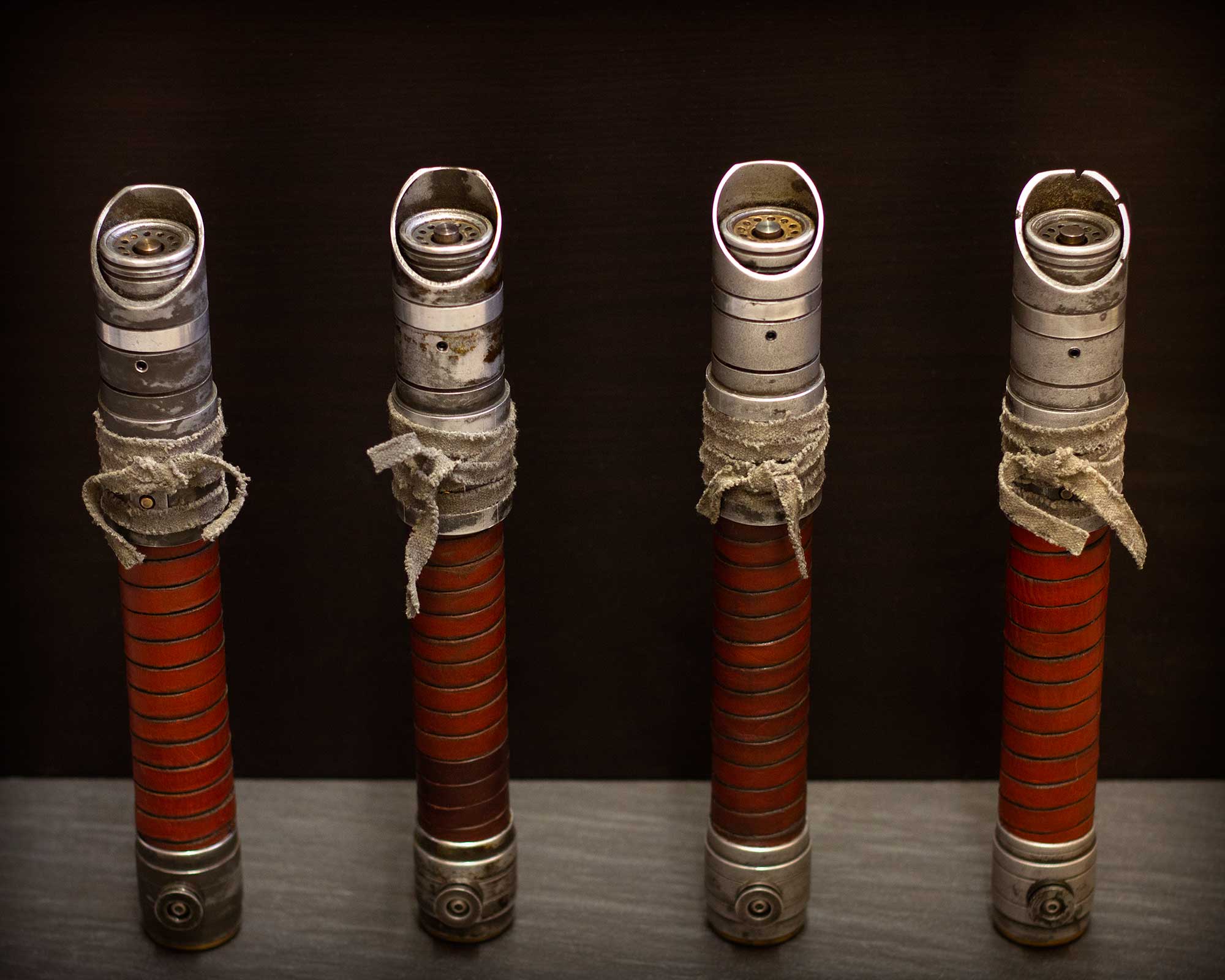 A shiny padawan and weathered master saber pair